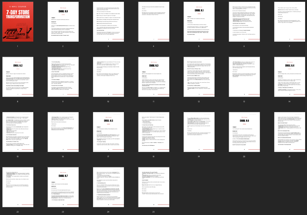 Email course designed to help you provide expert guidance on improving ecommerce store performance and increasing conversions while upselling your offering.