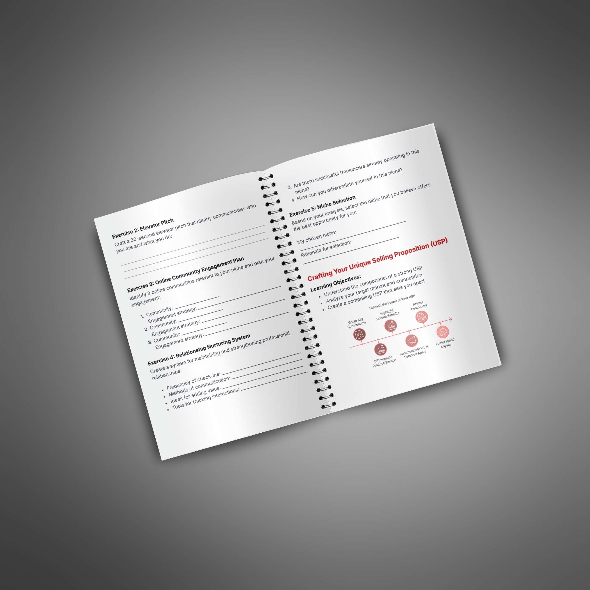 Workbook designed to help your customers build a strong personal brand as freelancers, offering practical exercises to find their niche and attract high-quality clients.