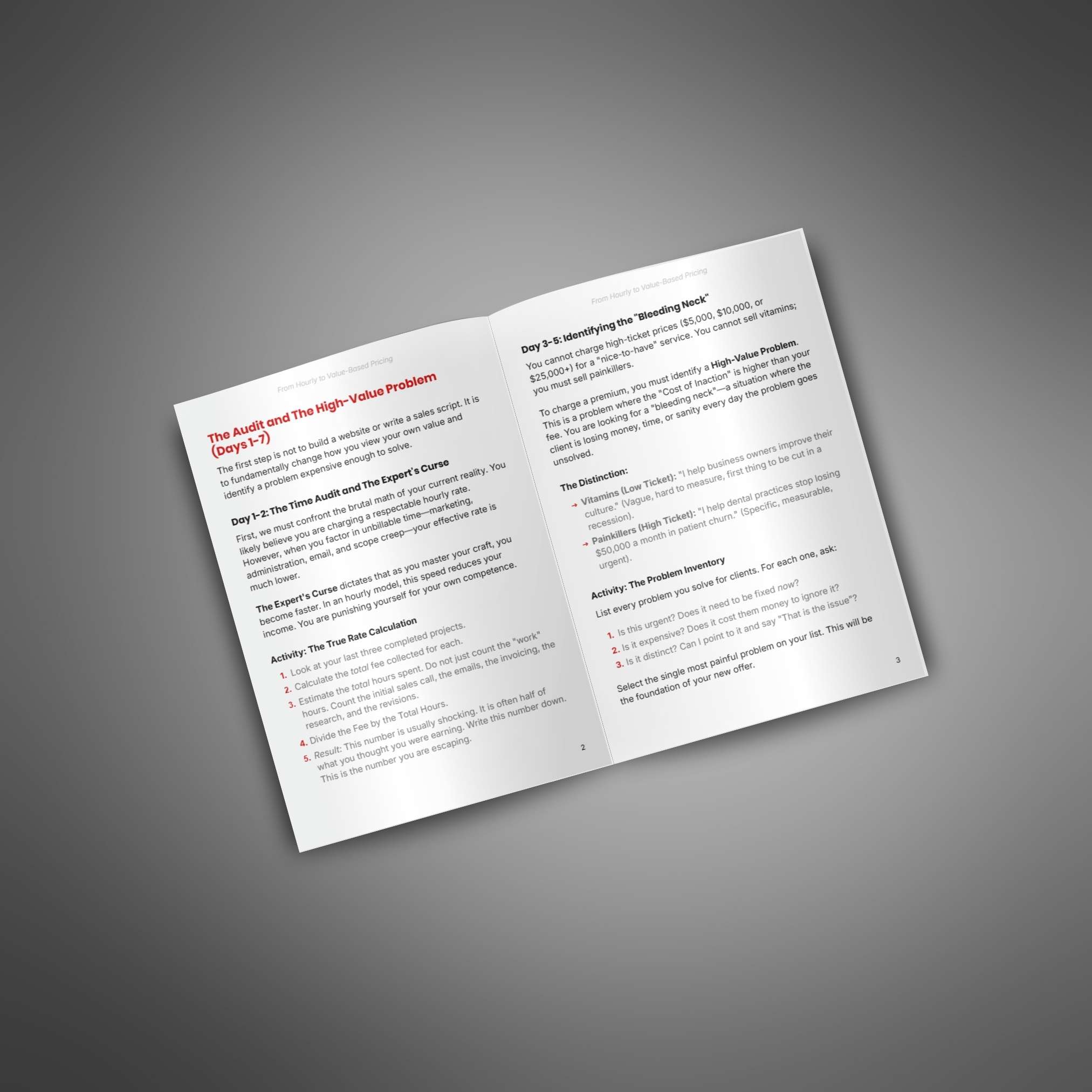 Guide to help your customers shift from hourly billing to value-based pricing by packaging their expertise and charging for results instead of time.