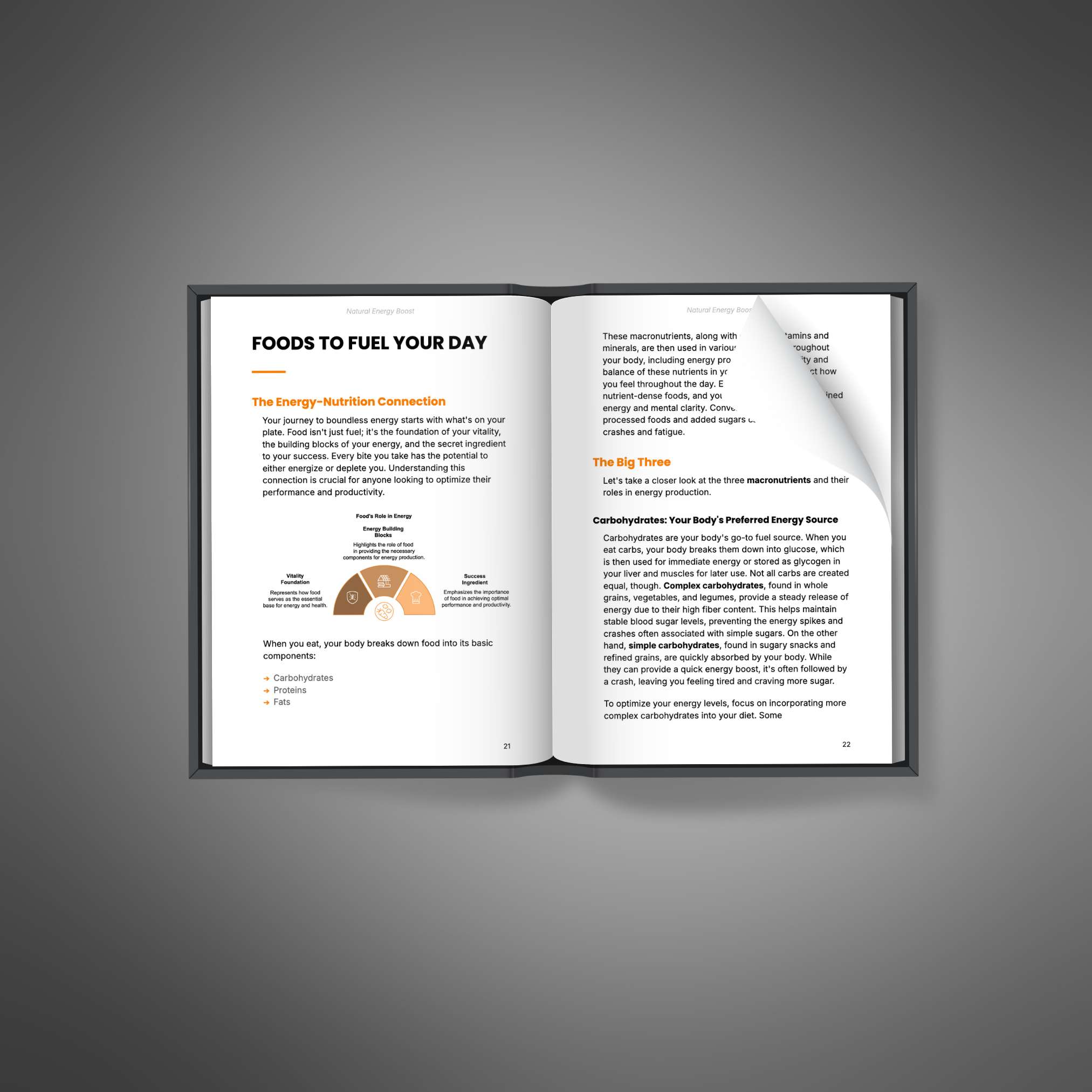 Ebook designed to help your customers understand natural ways to boost their energy through diet, exercise, and sleep, resulting in improved focus and overall well-being.