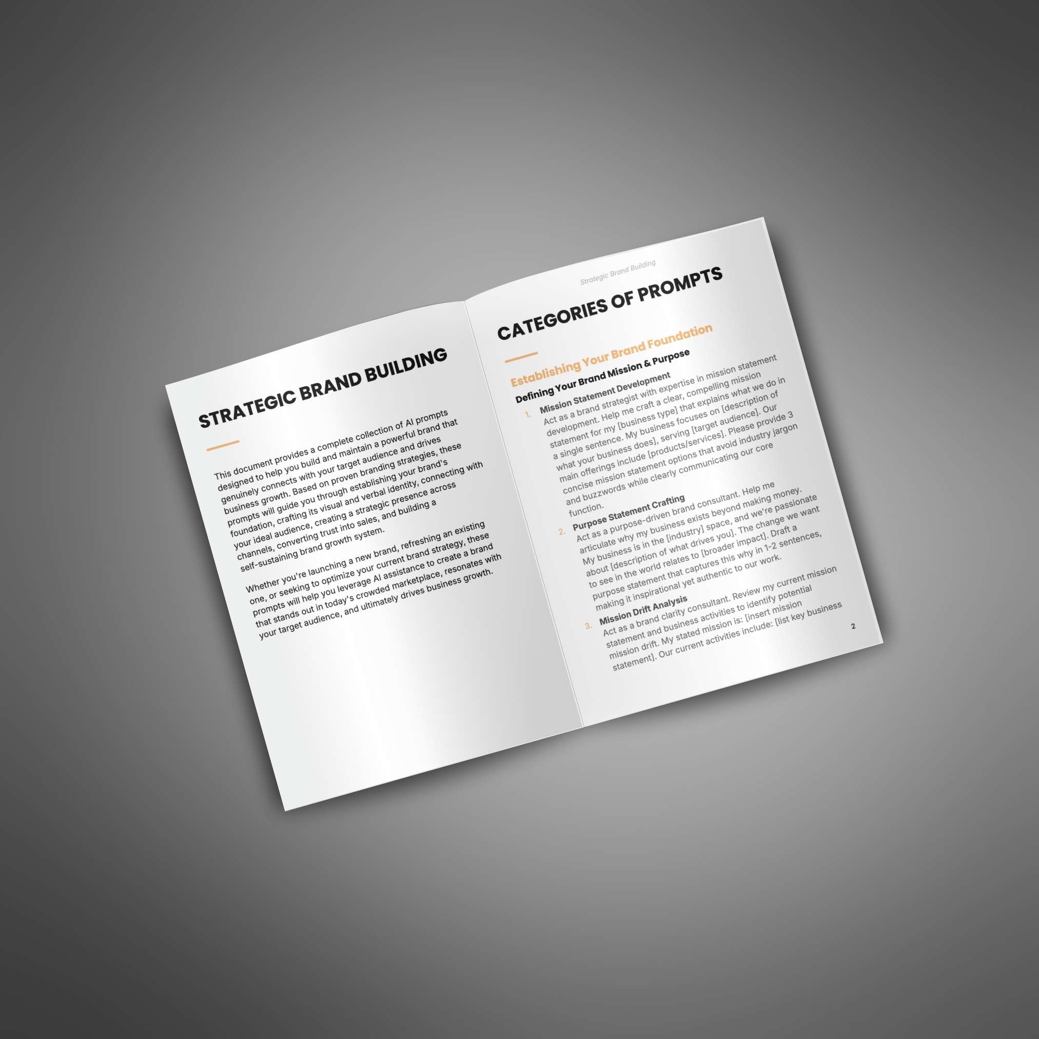 Prompt pack designed to help your customers use AI to build a strong, consistent brand that connects with the right audience and drives business growth.