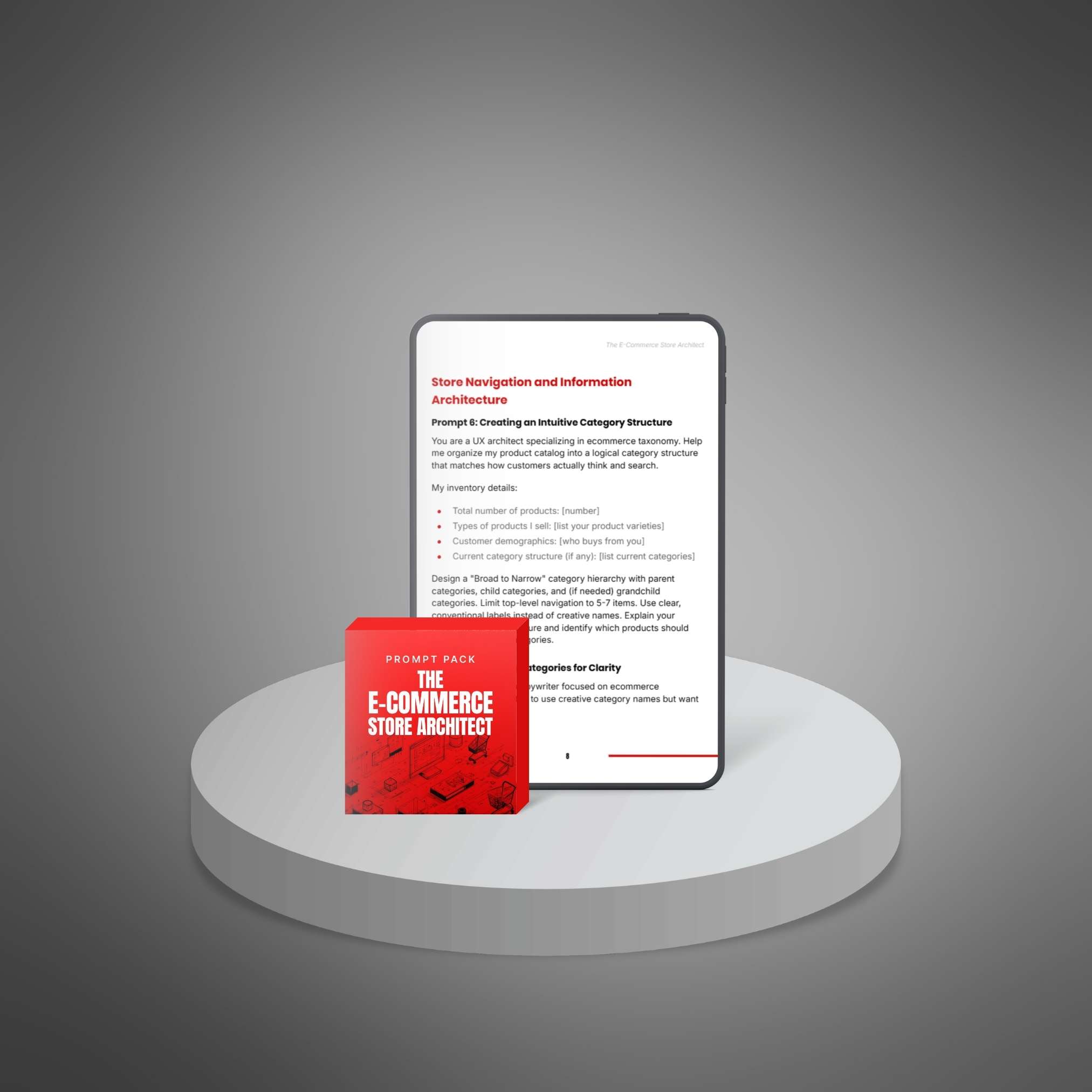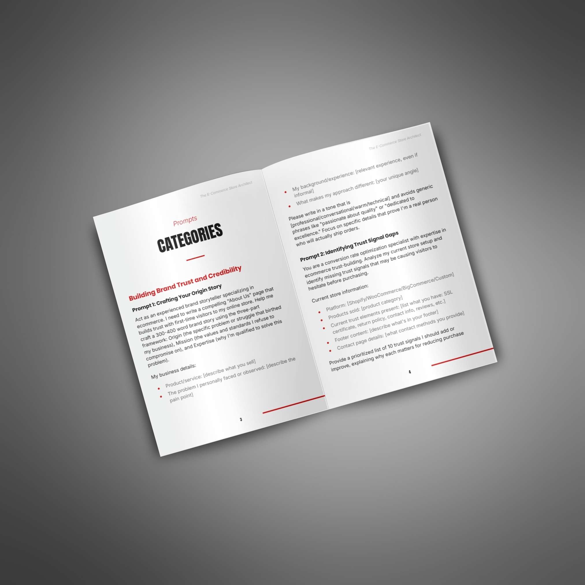Prompt pack designed to help your customers use AI to build high-converting ecommerce stores, improve trust, and increase sales with step-by-step guidance.