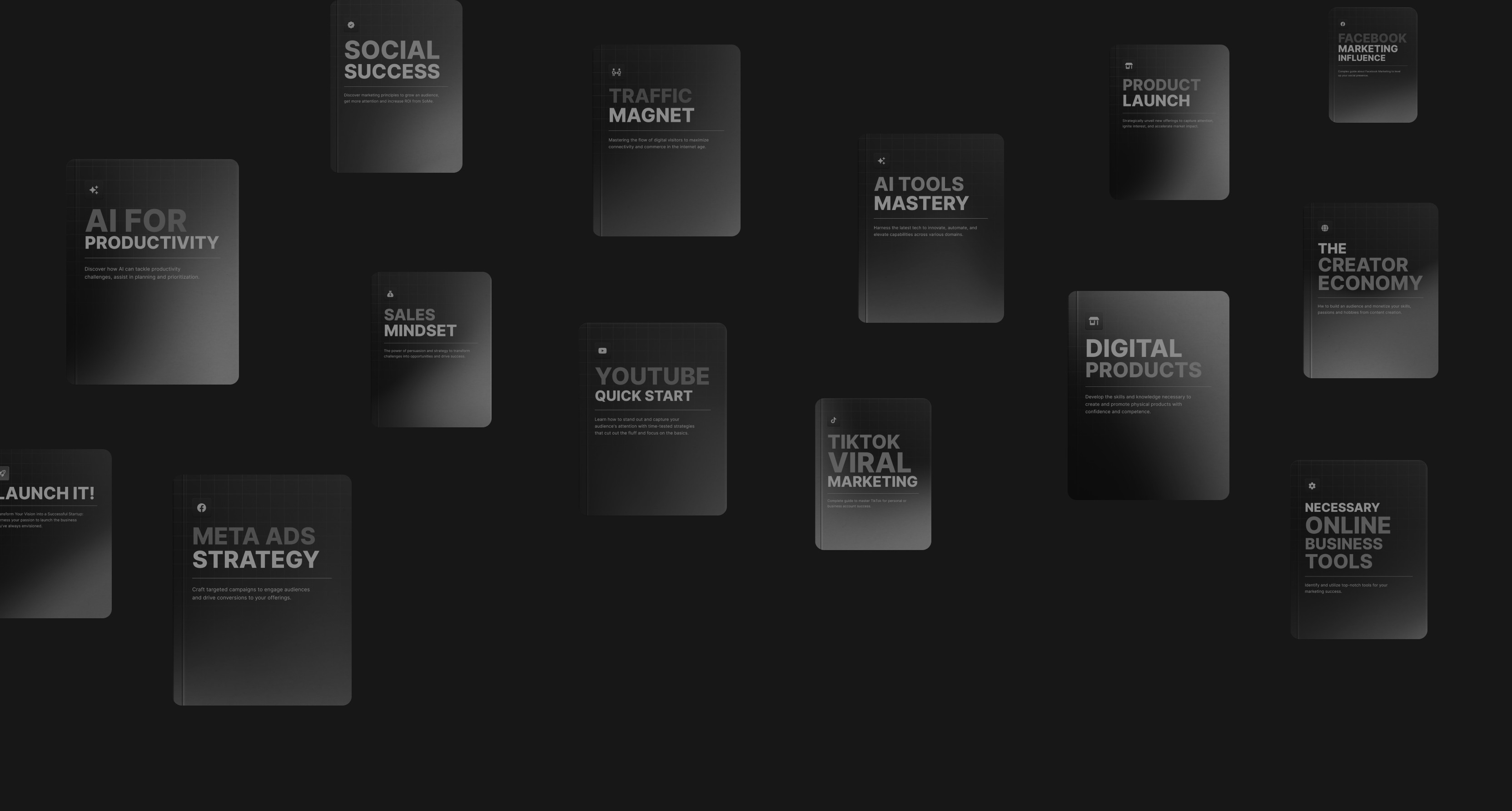 Ebooks, Videos, Audios, Templates, Prompts, Guides, Articles, Workbooks, Mini-Courses, Notion, and more.